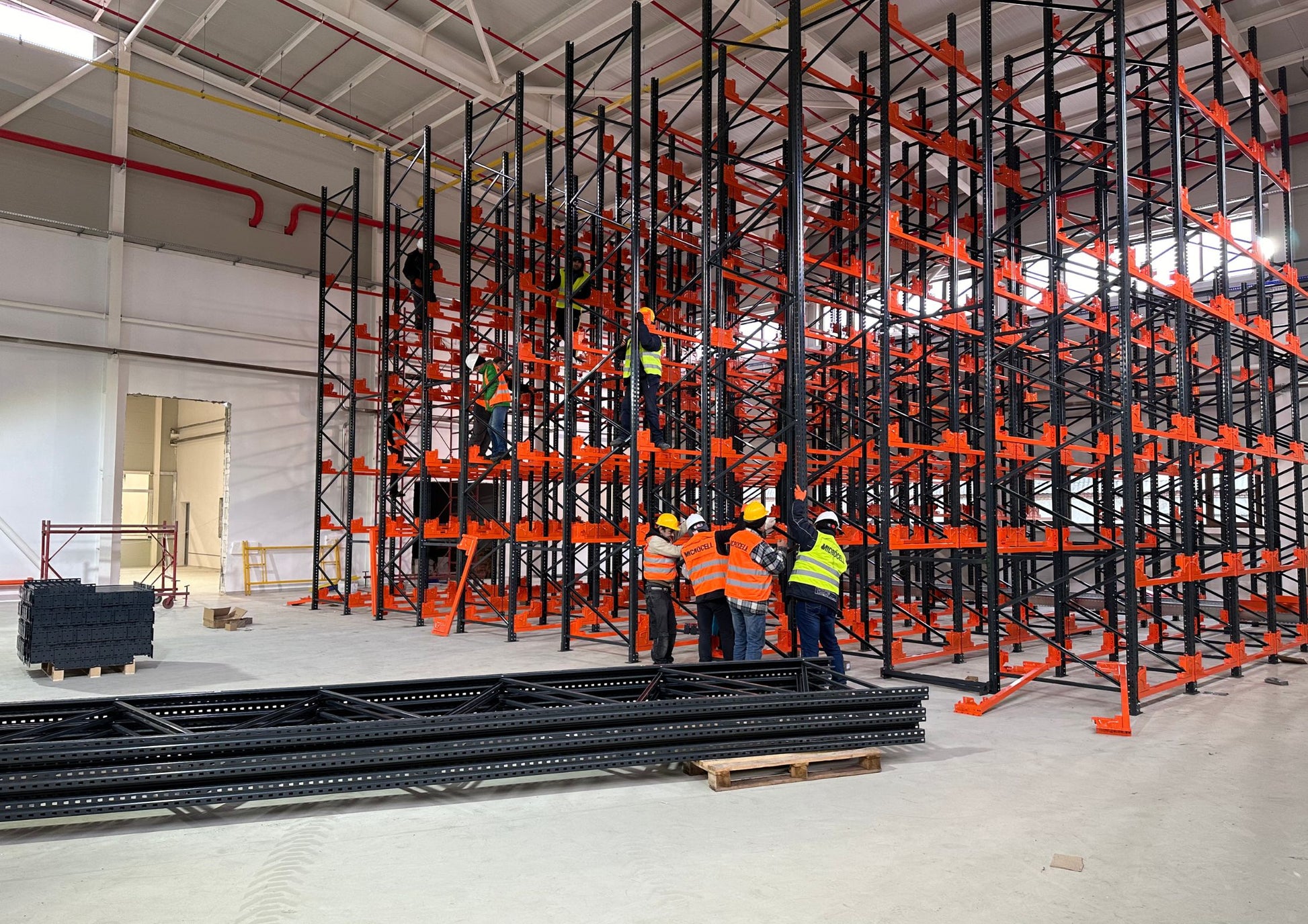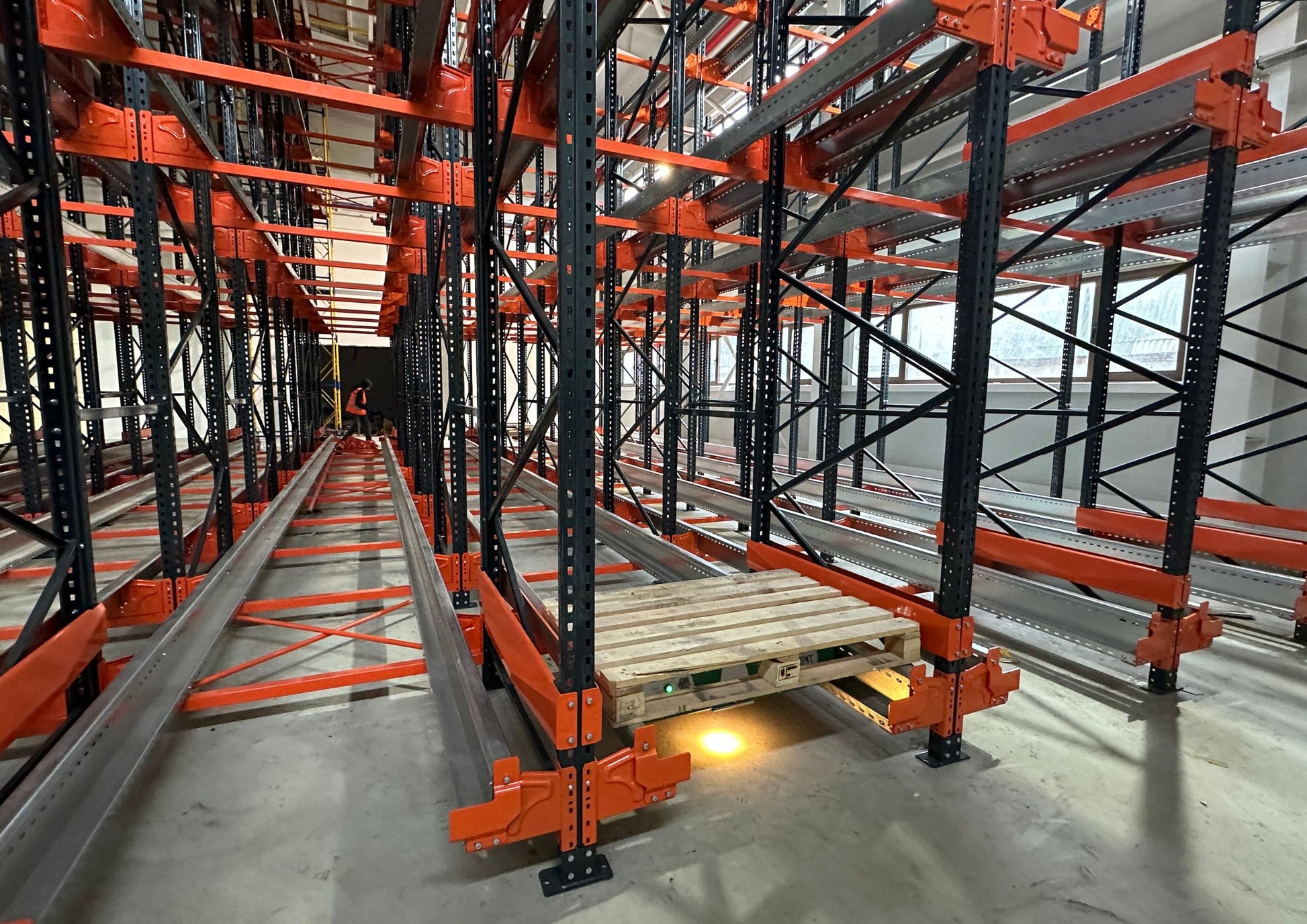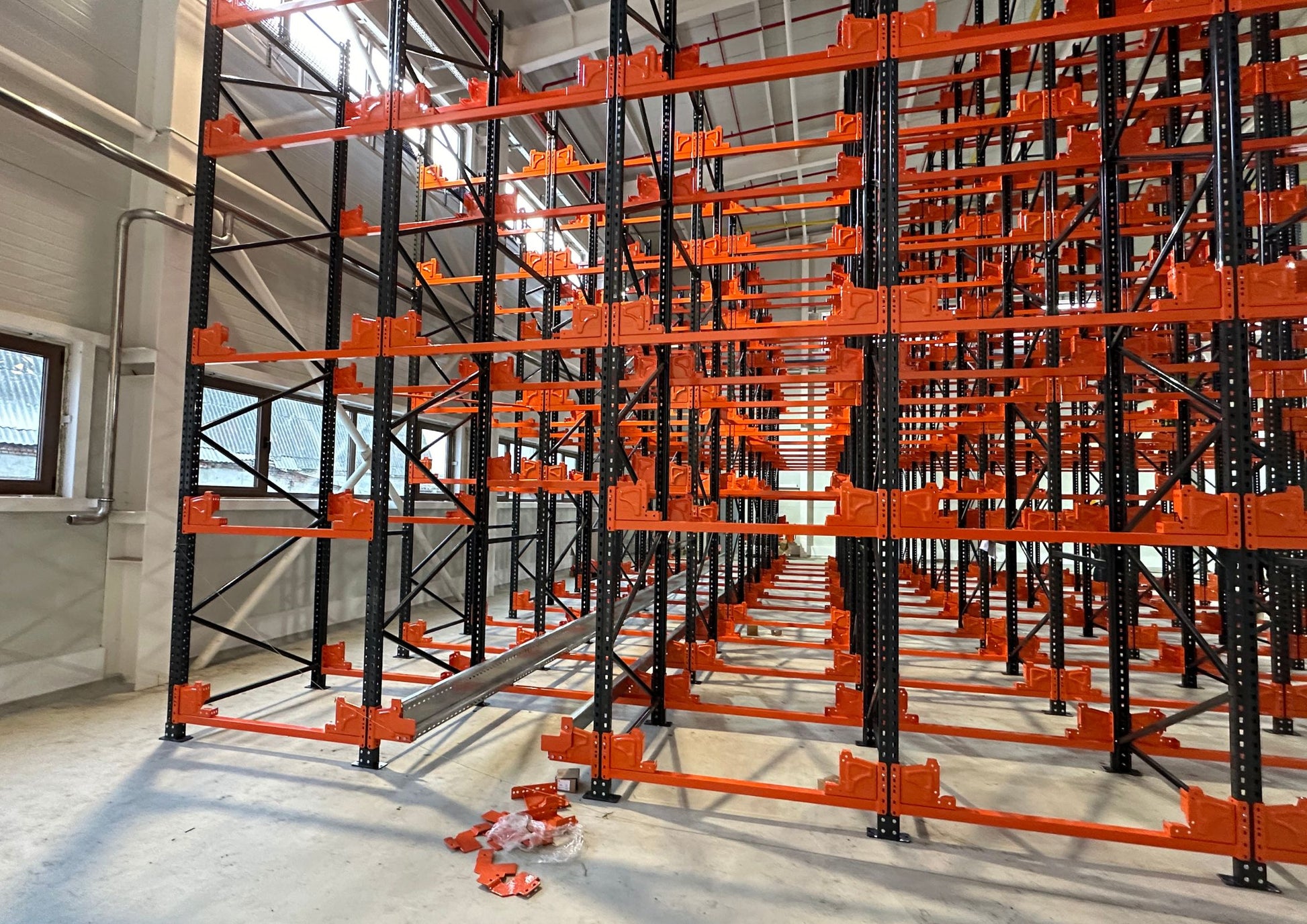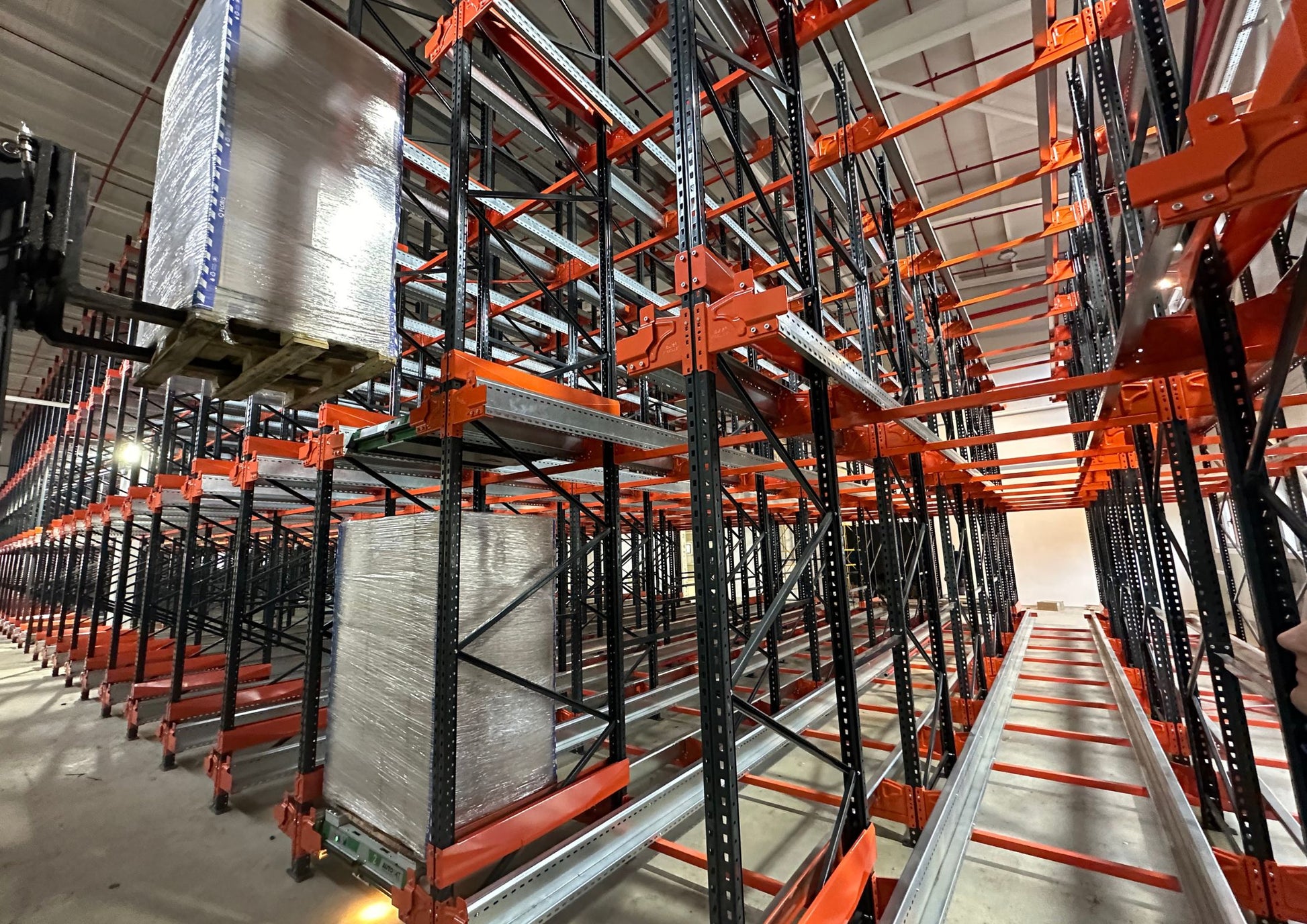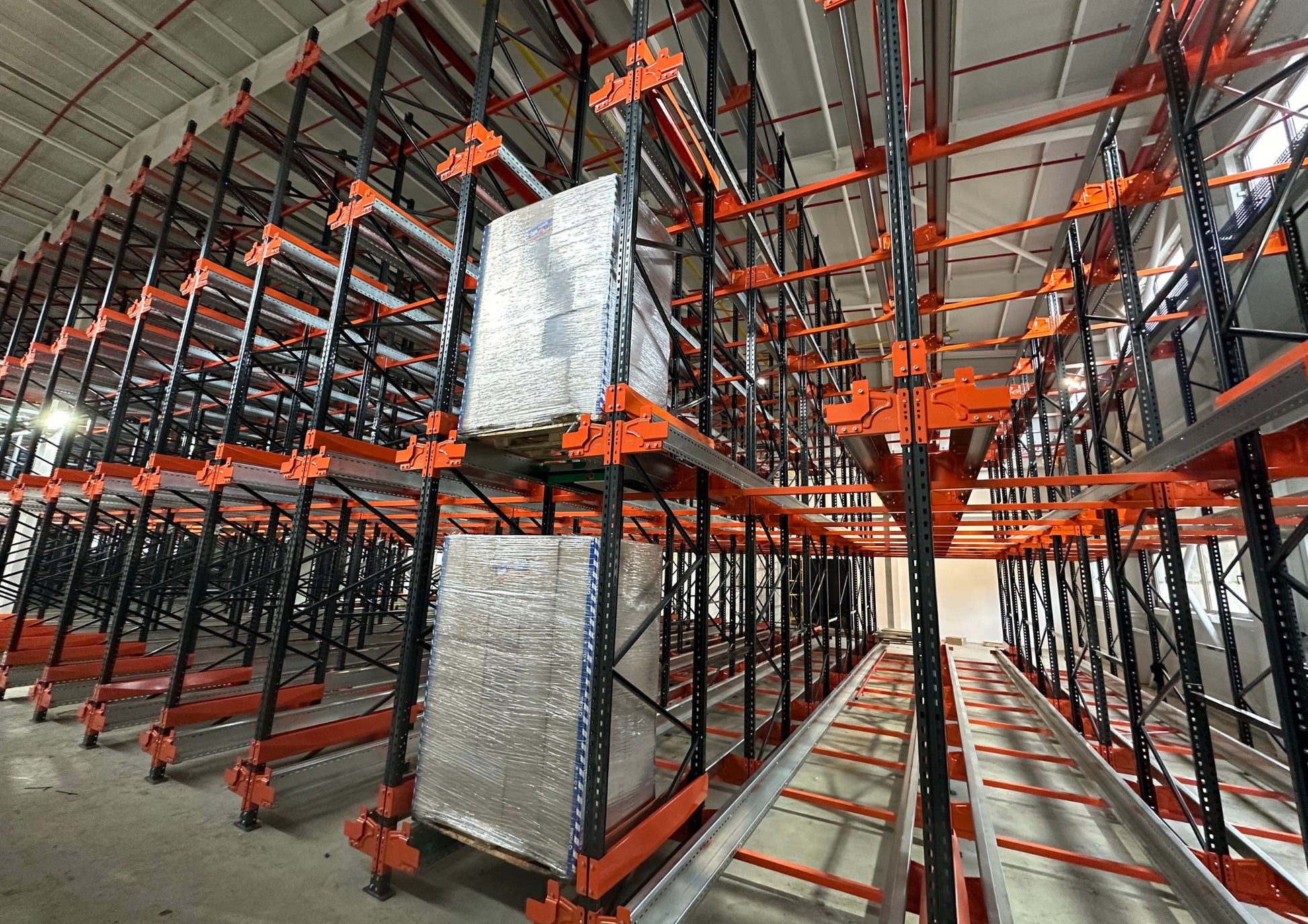 Permite stocarea densă a paleților, reducând spațiile goale și maximizând